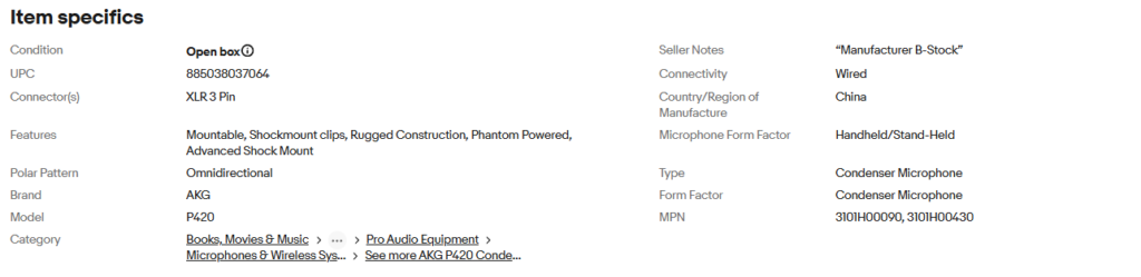 AKG P420 Studio Condenser Recording Podcasting Microphone Dual Capsule Mic