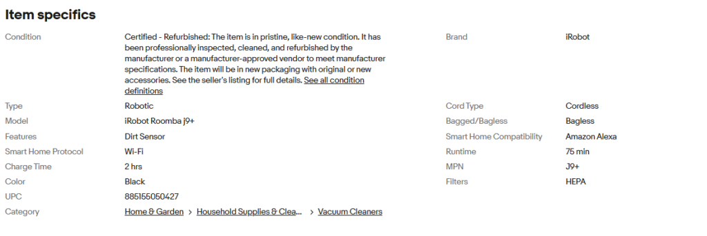 iRobot Roomba j9+ Self-Emptying Robot Vacuum Cleaner – Certified Refurbished!